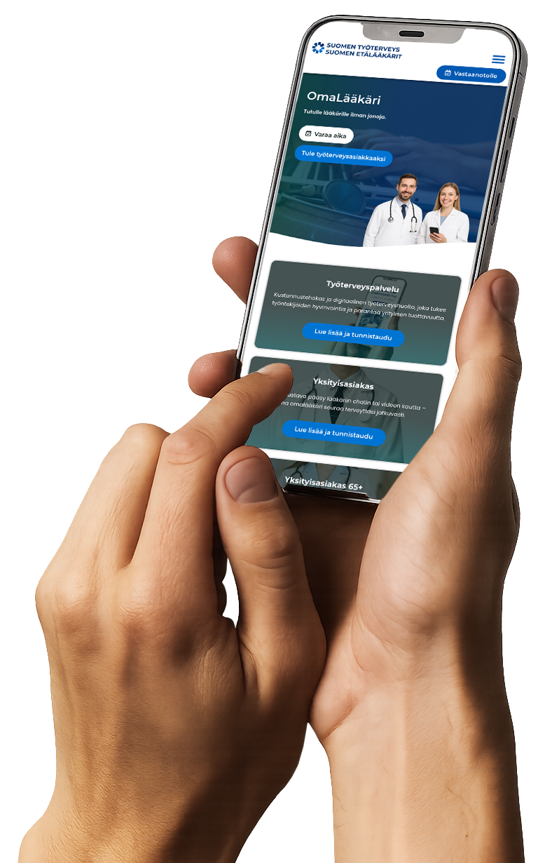 Me tarjoamme ensimmäisen OmaLääkärimallin Suomessa – nopean ja jatkuvan hoidon, joka kulkee mukanasi arjessa. Saat laadukasta, tutkittuun tietoon perustuvaa hoitoa silloin kun sitä tarvitset – tehokkaasti, edullisesti ja luotettavasti.
